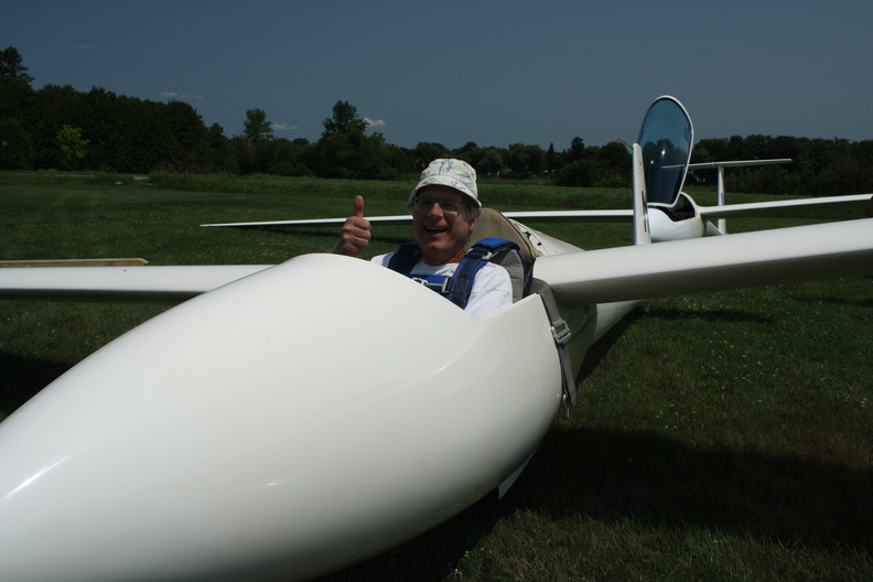 Dave Frank is getting help from Carlee Glendenning to attaching the canopy to his glider in preparation for launch. (20Jul16)