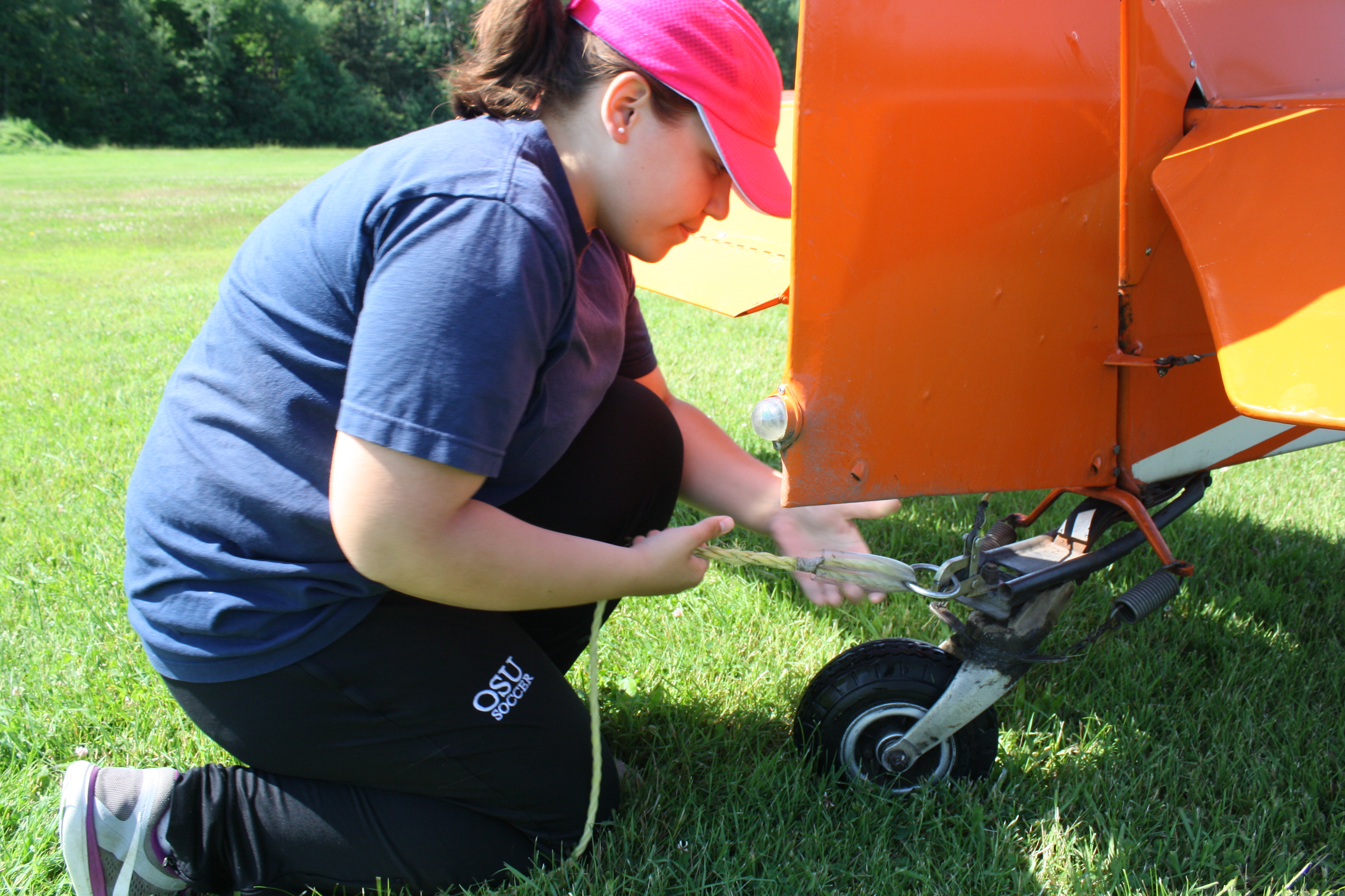 Connie Hatzis, one of the club's newest members, is seen attaching the tow rope to the tow plane. (28Jun17)