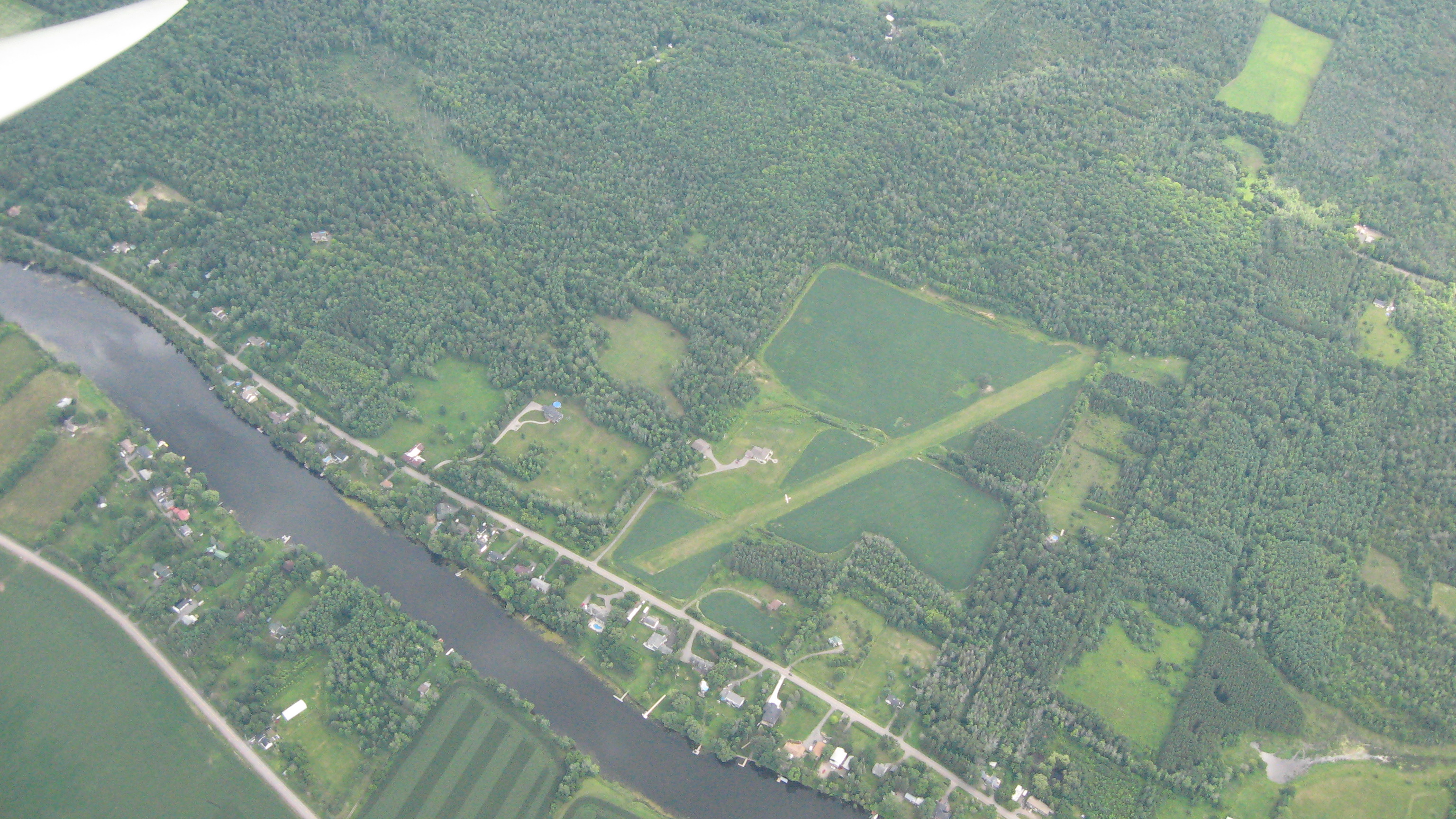 Someone who caught a great thermal got this picture of Gord's glider which landed safely on this private airstrip.