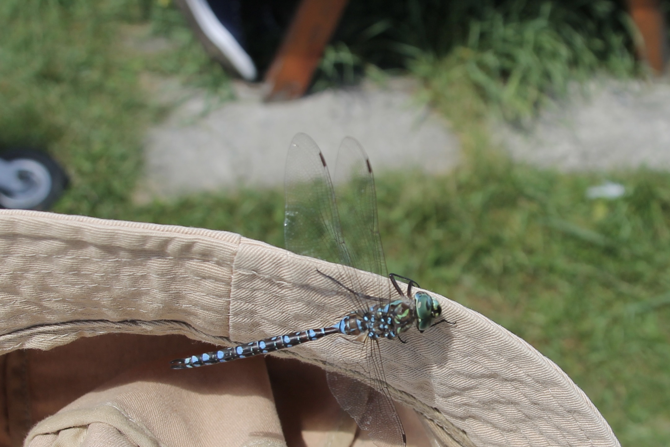 Damsel Fly, decided to hitch a ride on the hat of a Libelle Pilot (Libelle = Dragonfly)