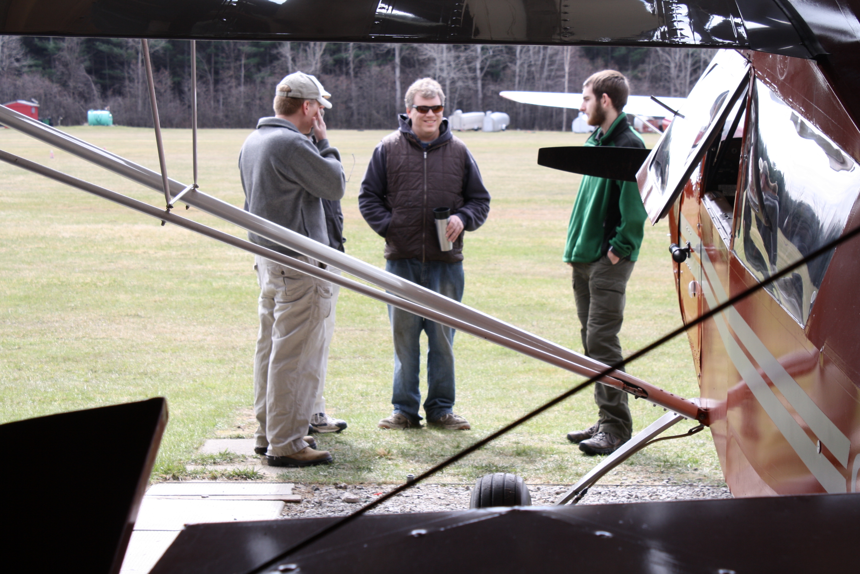 Talking flying during a break in rigging gliders. (14Apr12)