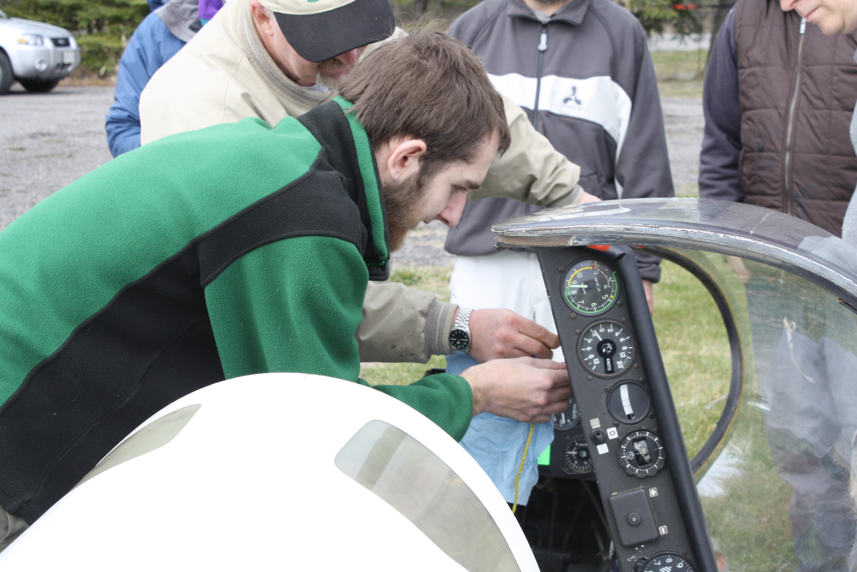 James is seen attaching safety lanyard to canopy. (7Apr12)