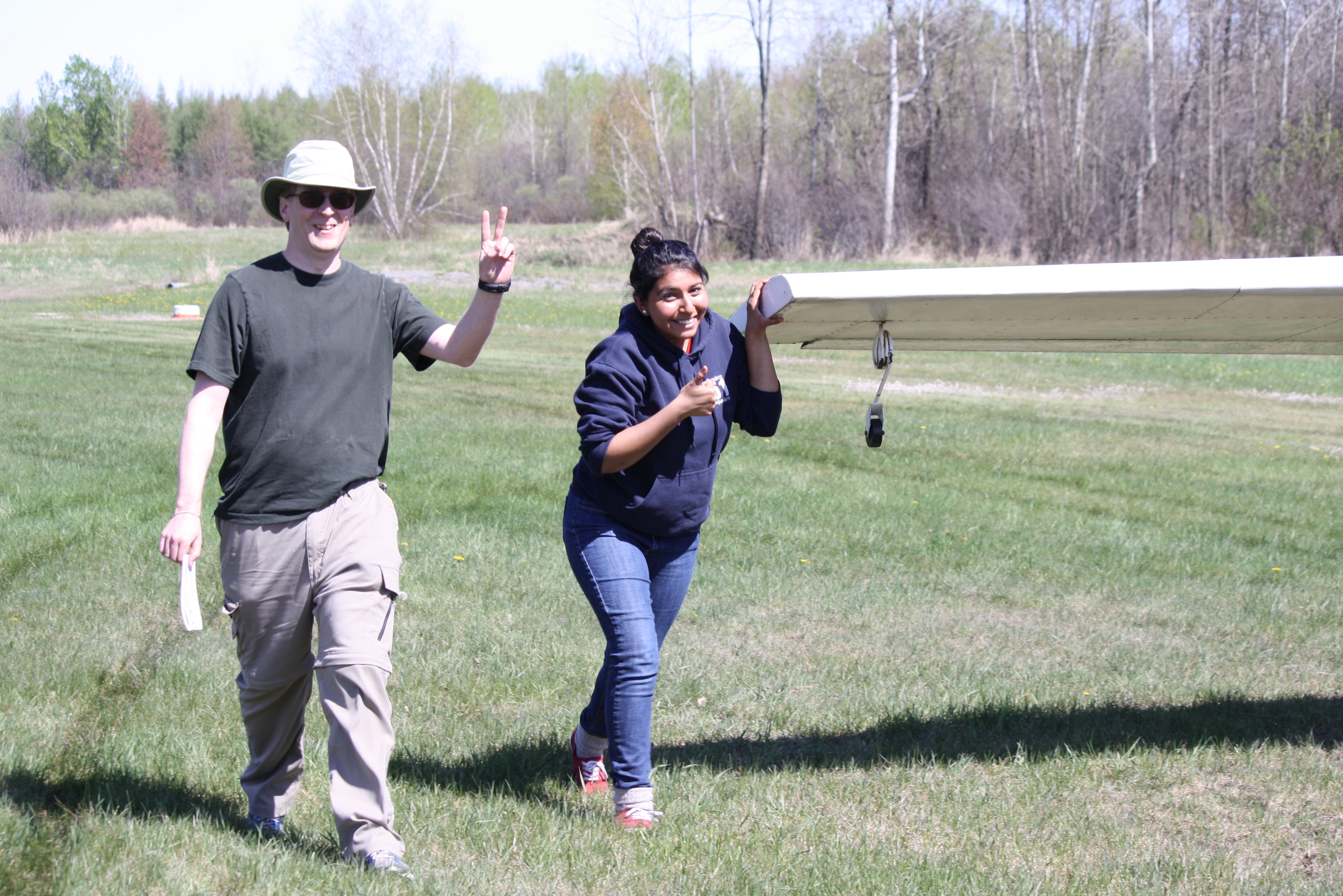 Vince and Maria are seen walking RVS back to the launch point on Rwy 08. (6May12)